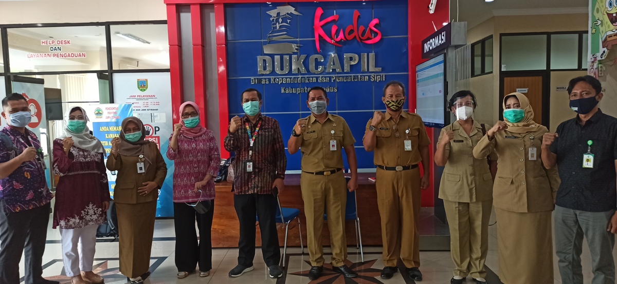 Jajaran Dinas Kesehatan Kabupaten Kudus bersama Kemenkes RI melaksanakan monev di Kantor Disdukcapil.