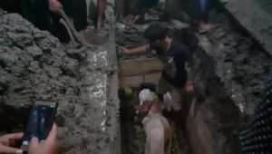 Kondisi Mbah Pani masih di liang pertapaan sebelum diangkat.